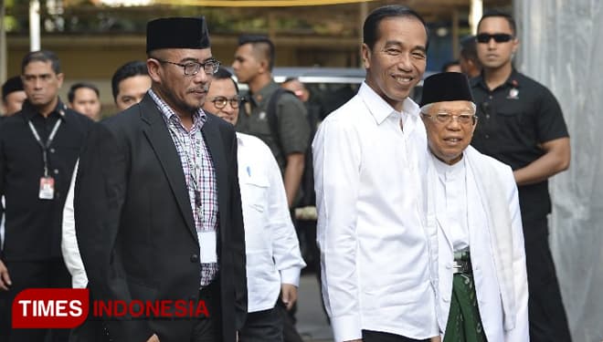 TIMES Pasuruan/Presiden terpilih, Jokowi, saat tiba di Gedung KPU RI, Minggu (30/06/2019). (FOTO: Hasbullah/TIMES Indonesia).